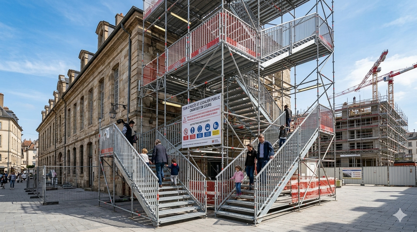 Conçu spécialement pour les bâtiments patrimoniaux, l’échafaudage historique s’adapte aux structures anciennes tout en respectant l’intégrité architecturale.