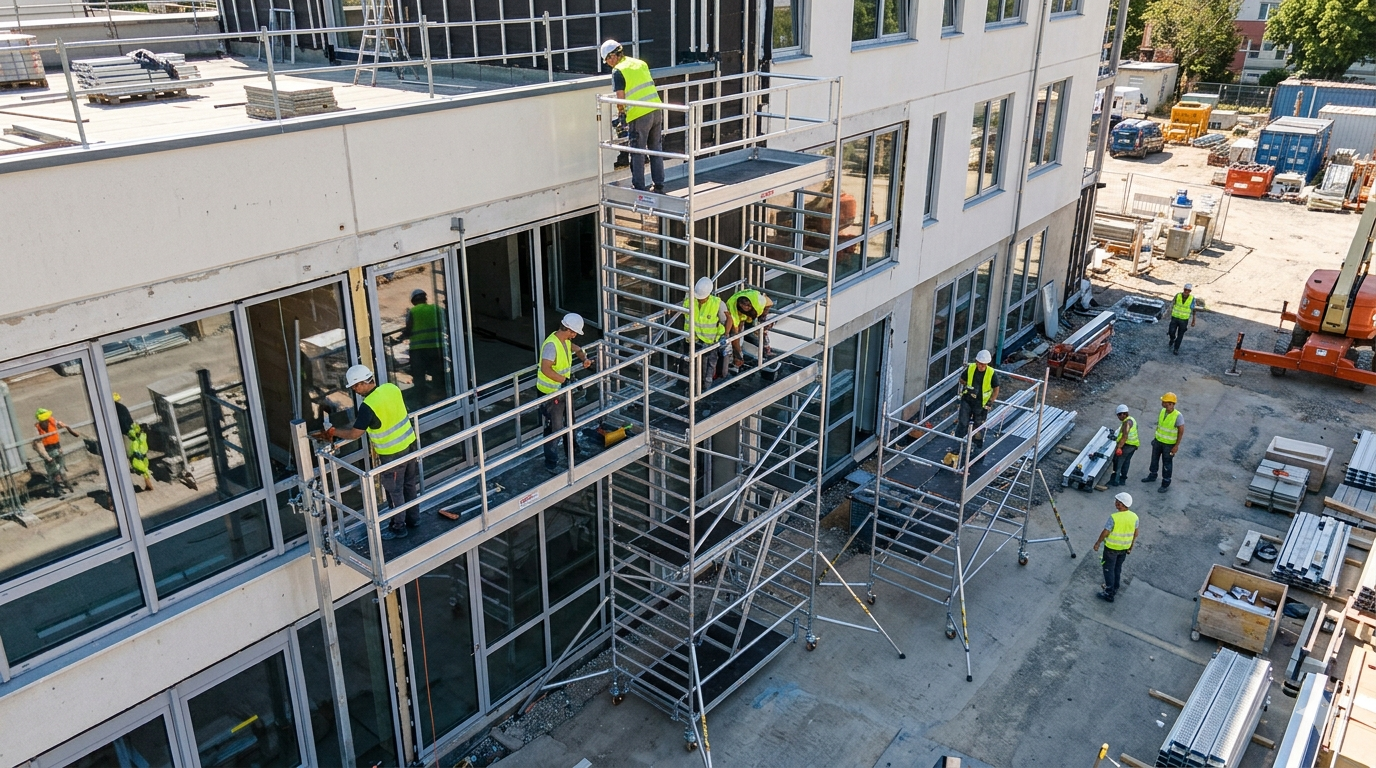 Permet un accès complet et sécurisé aux surfaces extérieures d’un bâtiment pour les travaux de rénovation, de construction ou d’entretien.